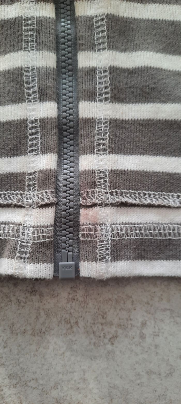 Gilet zippée à rayures blanches et grise 2 poches Quelques tâches (voir photos)