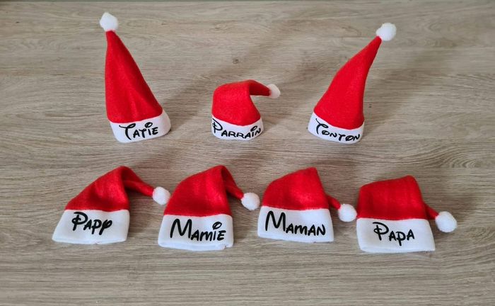 Mini bonnet de Noël personnalisé 3€ l'unité ou 25€ les 10 Prénom iu mot de votre choix Envoi rapide A poser sur la table ou pour y insérer les couverts