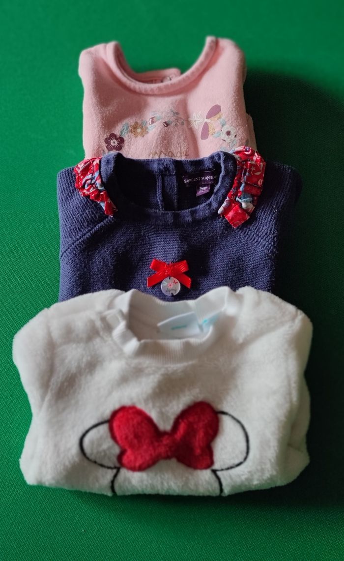 Lot de 3 jolis pulls en 3 mois 1 marque sergent major, 1 marque Disney, 1 marque Gémo Très peu portes
