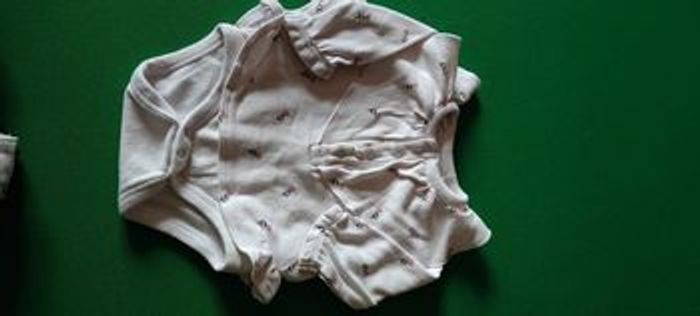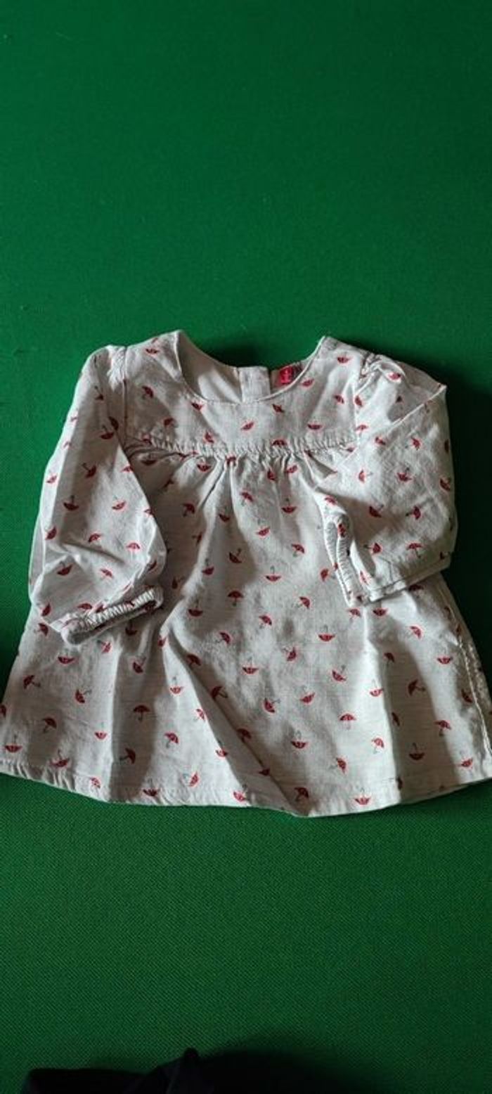 Lot composé de 5 hauts de taille 3 mois: - 1 sous pull noir marque Kiabi - 1 haut motif parapluie marque orchestra -1 haut bodie marque Gémo - 1 tee shirt vert marque Kiabi - 1 haut rose marque kiabi