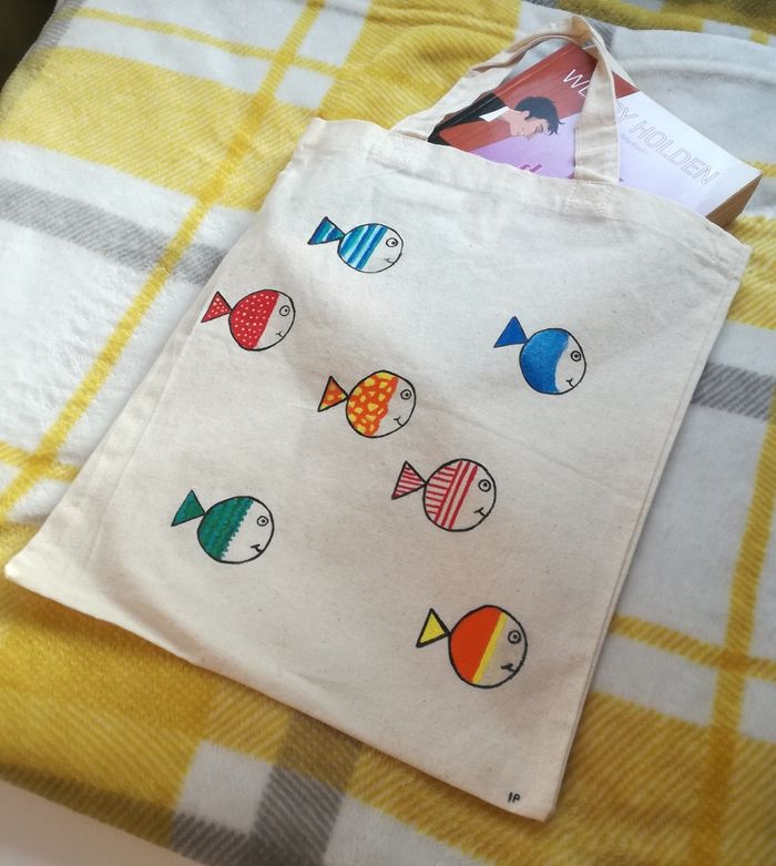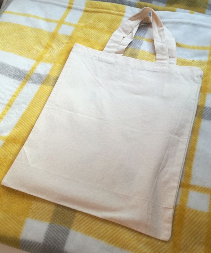 Sac en coton fabrication équitable 100% coton Idéal, pour mettre son livre ses lunettes son portable ou autres . largeur 25,5cm X 32 cm sans les anses .