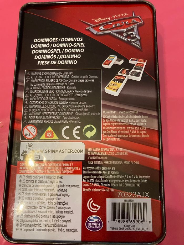 Boîte métal contenant un jeu de dominos aux motifs de car’s 3 le dessin animé de Disney Complet et en excellent état Non négociable Envoi rapide et soigné