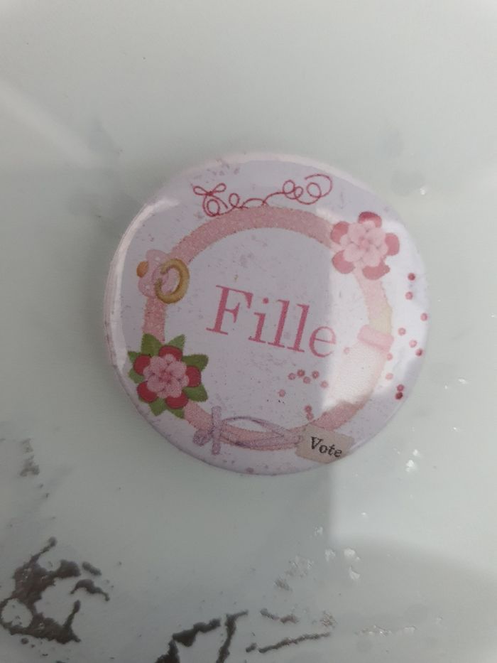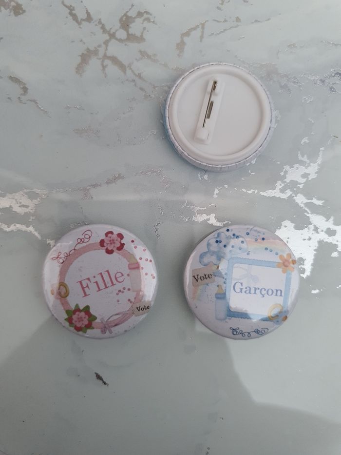Badge personnalisé baby shower voter pour le futur sexe de l'enfant. Existe en 25mm 32mm et 58 mm N'hésitez pas