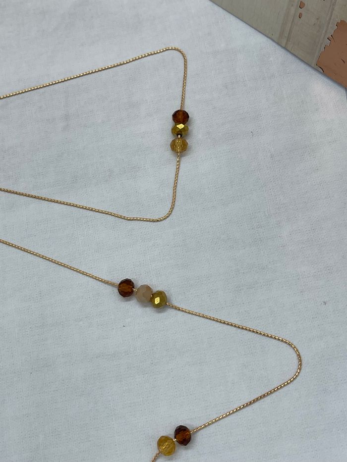 Colliers dos nu en perles cristal beige marron doré - photo numéro 1