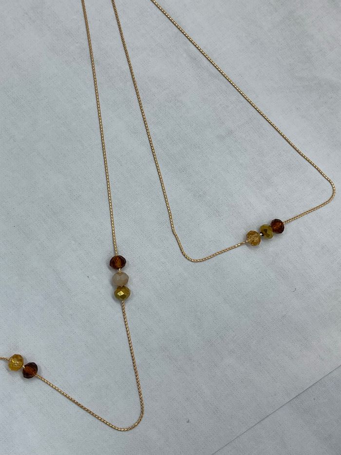 Colliers dos nu en perles cristal beige marron doré - photo numéro 2