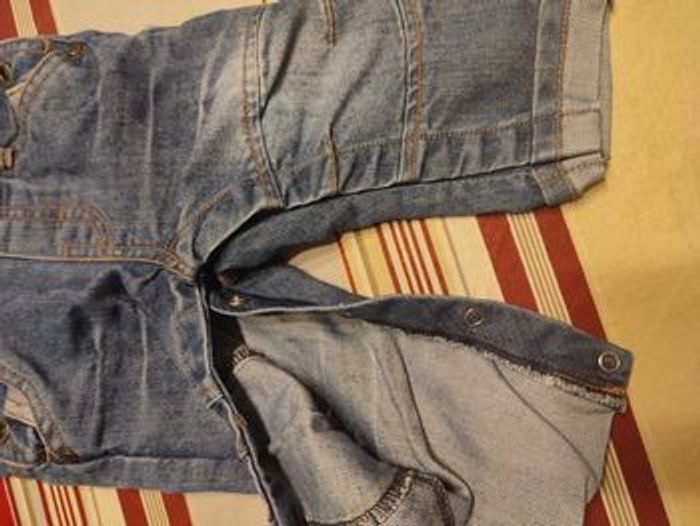 Salopette en jeans lulu castagnette. 6 mois. Bouton pression a l'entrejambe.