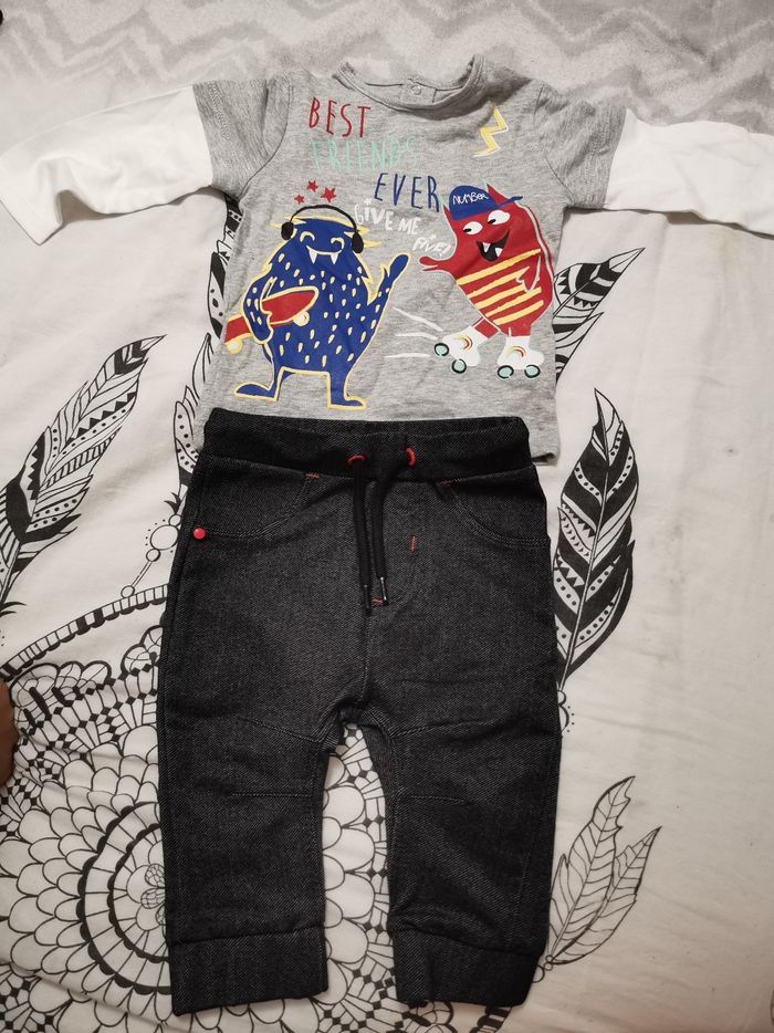 Ensemble Bébérêve en bon état Tee-shirts ML Pantalon Taille 6 mois