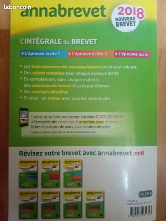 Livre annabrevet complet pour révision du brevet Programme du nouveau brevet Contient 60 sujets corrigés A permis de décroché le brevet Mention Très Bien donc idéal pour la réussite Livre N'hésitez pas à me contacter pour plus de renseignements Annonce en ligne = article disponible