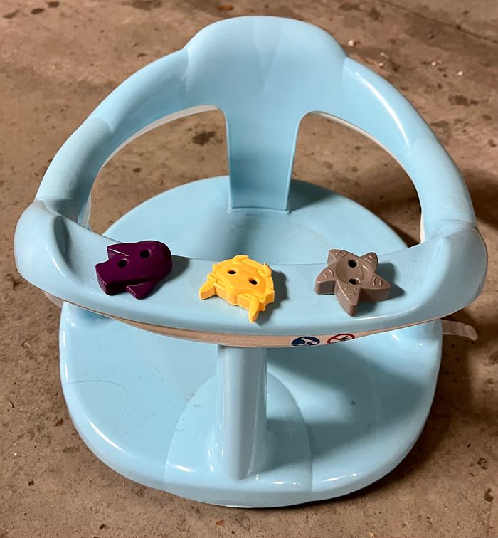 Vend anneau de bain avec ventouse en dessous pour plus de stabilité.