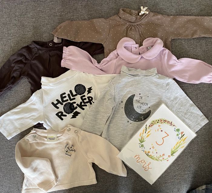 Lot comprenant : - 5 t-shirt manches longues - 1 petit pull court à mettre sur une robe Très bon état ! Multiples marques