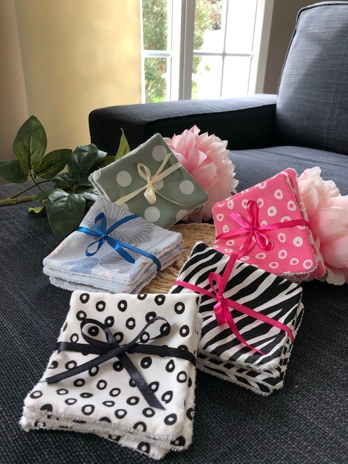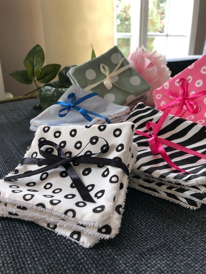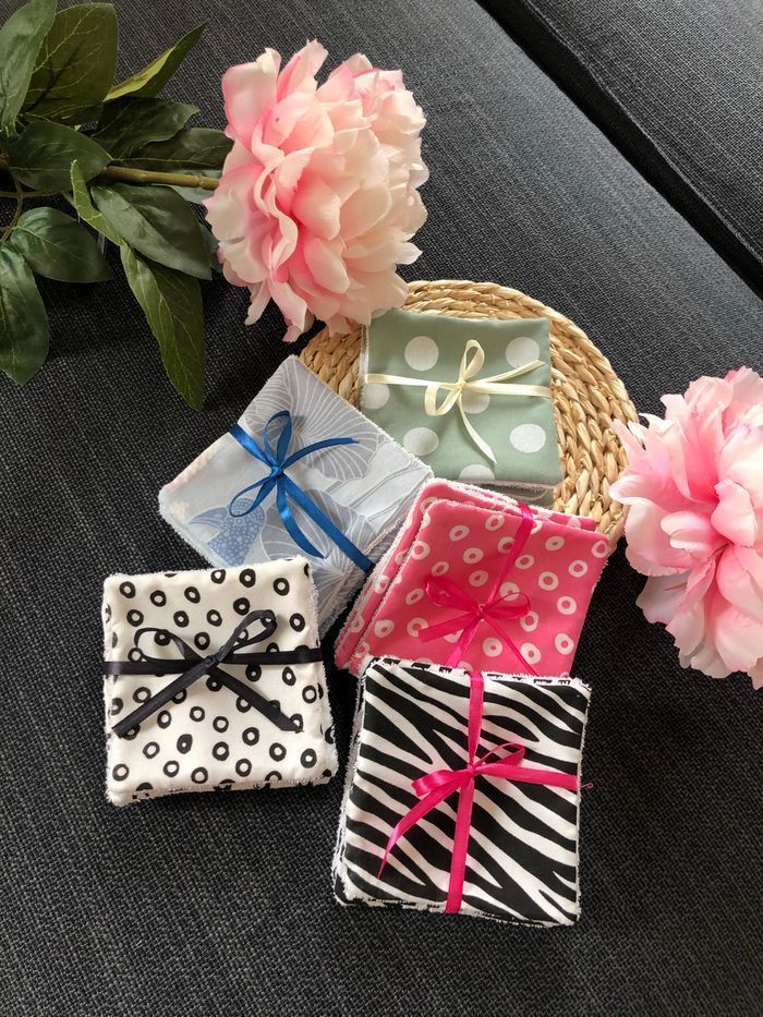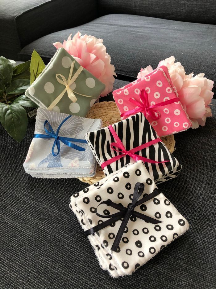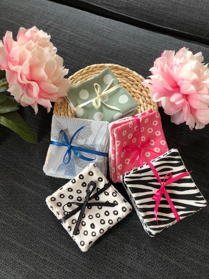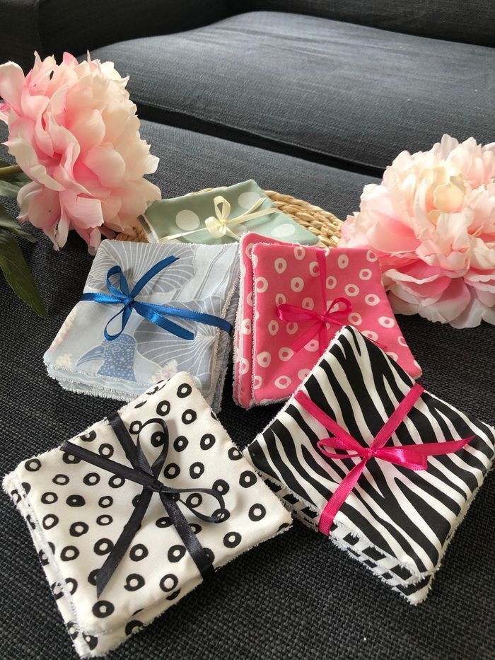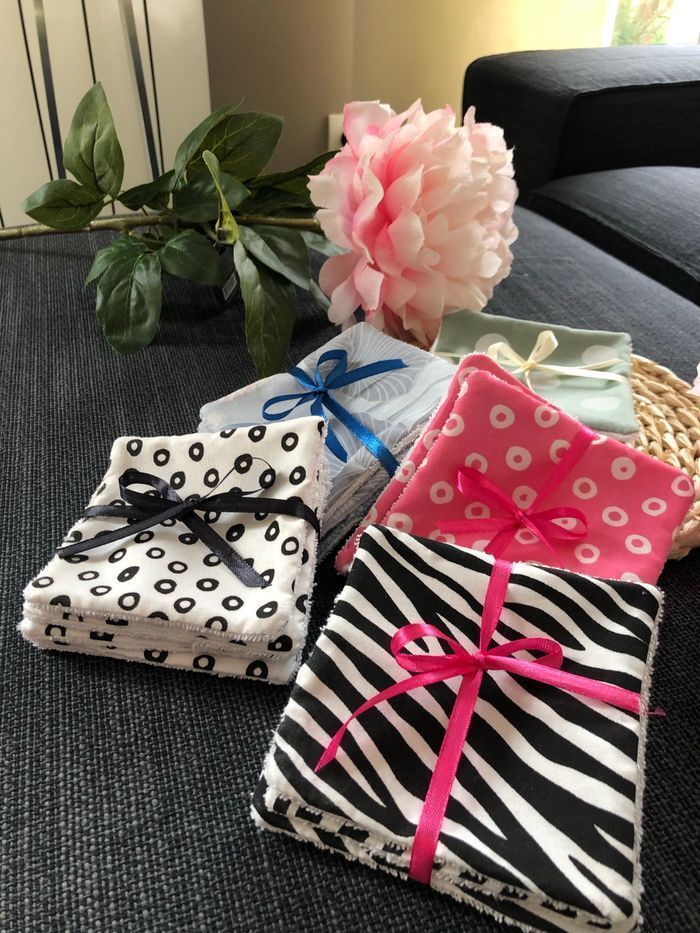 Lingettes lavable et réutilisable lot de de 6 + 1 offert. Carré de 10x10cm Prix d’un lot Si vous souhaitez une quantité ou taille précise n’hésitez pas à revenir vers moi J’ai plus de 80 modèles de tissus différents Possibilité de faire panier assorti Un côté en éponge coton Lavage 30° séchage à l’air libre. Envoi rapide et soigné Toutes les lingettes sur @ateliersdisalingettes