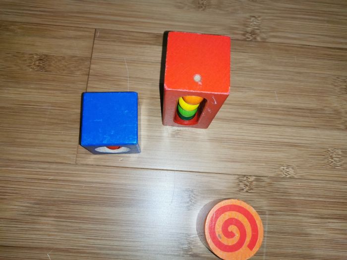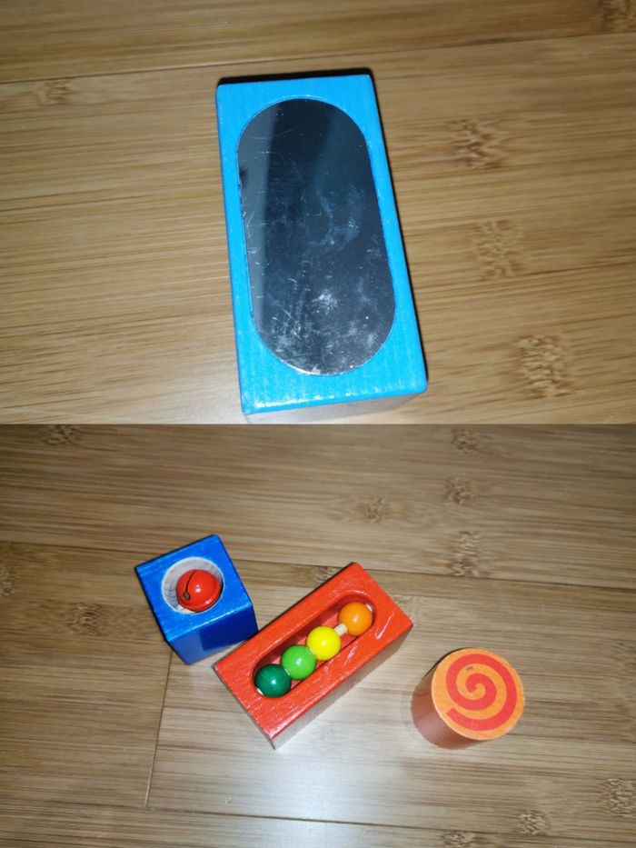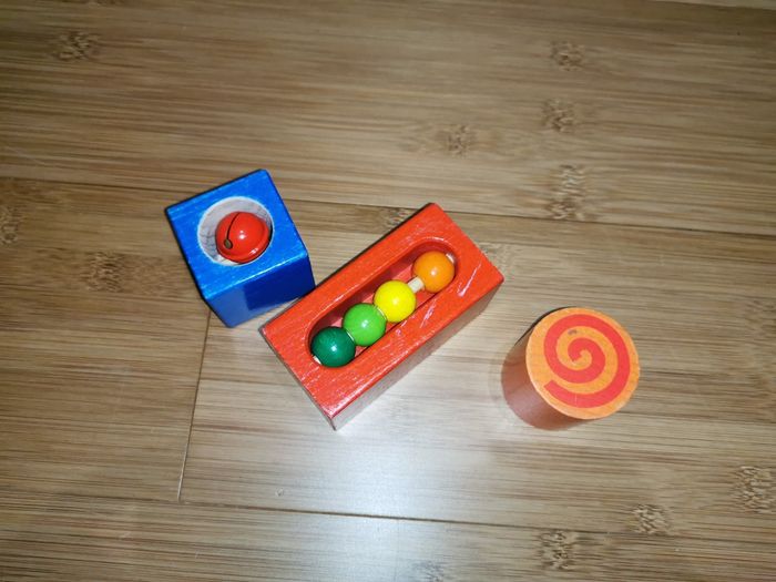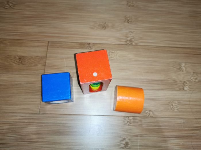Lot de cubes en bois Très bon état Cube bleu avec grelot Rectangle rouge avec billes pour commencer à compter Rectangle bleu avec miroir Maison non fumeur Emballage soigné de préférence cartonné N'hésitez pas à visiter et à suivre mon dressing #la_g_jouetsbebe
