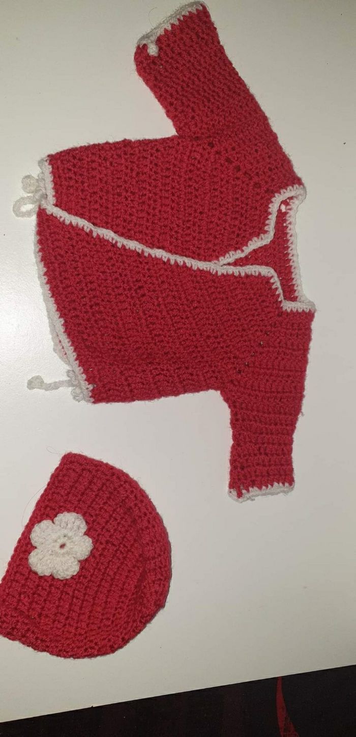 Gilet taille 0/1 mois bonnet taille 0/1 mois fait au crochet avec de la laine layette