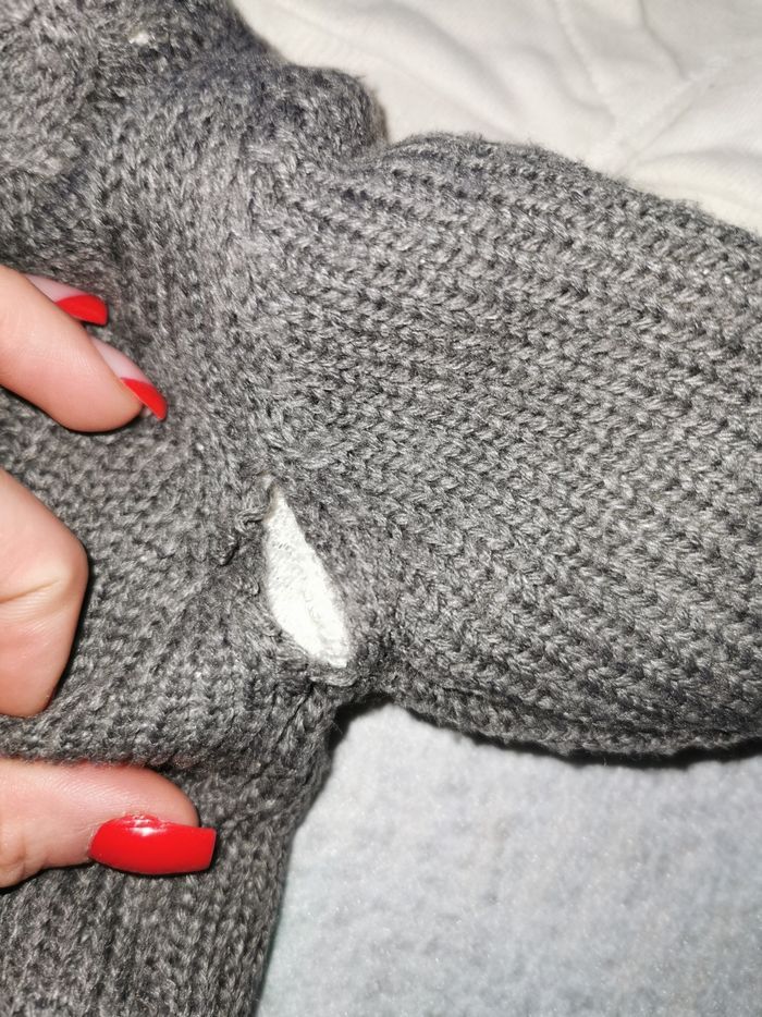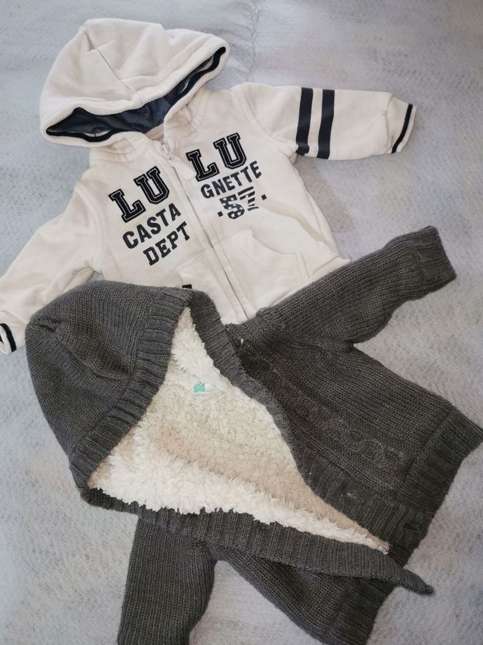 Bon état La grosse veste grise en laine est décousue sous le bras d'ou le prix des 2 3 mois