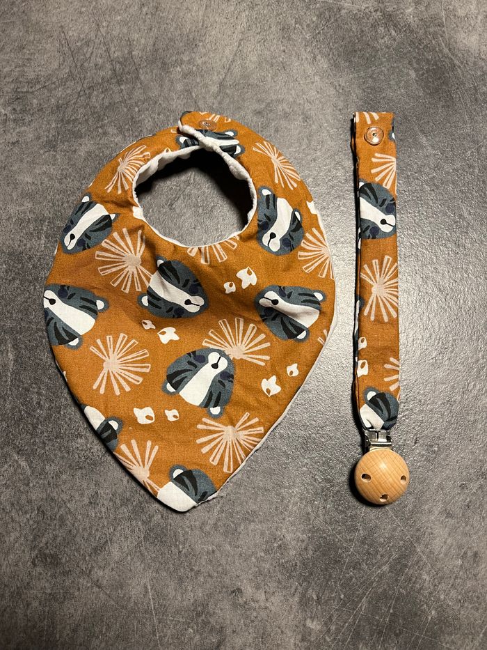 À vendre lot naissance composé d’ : - un attache tétine, - un bavoir bandana