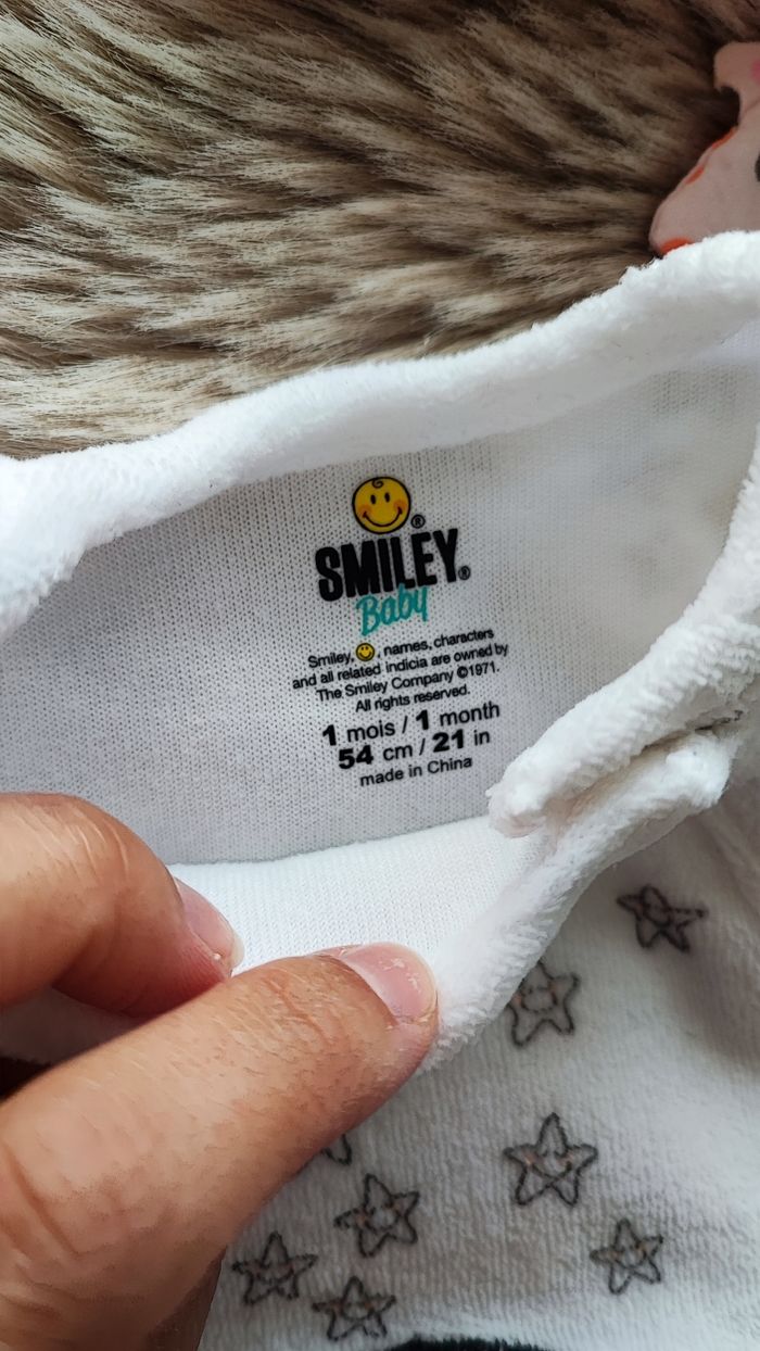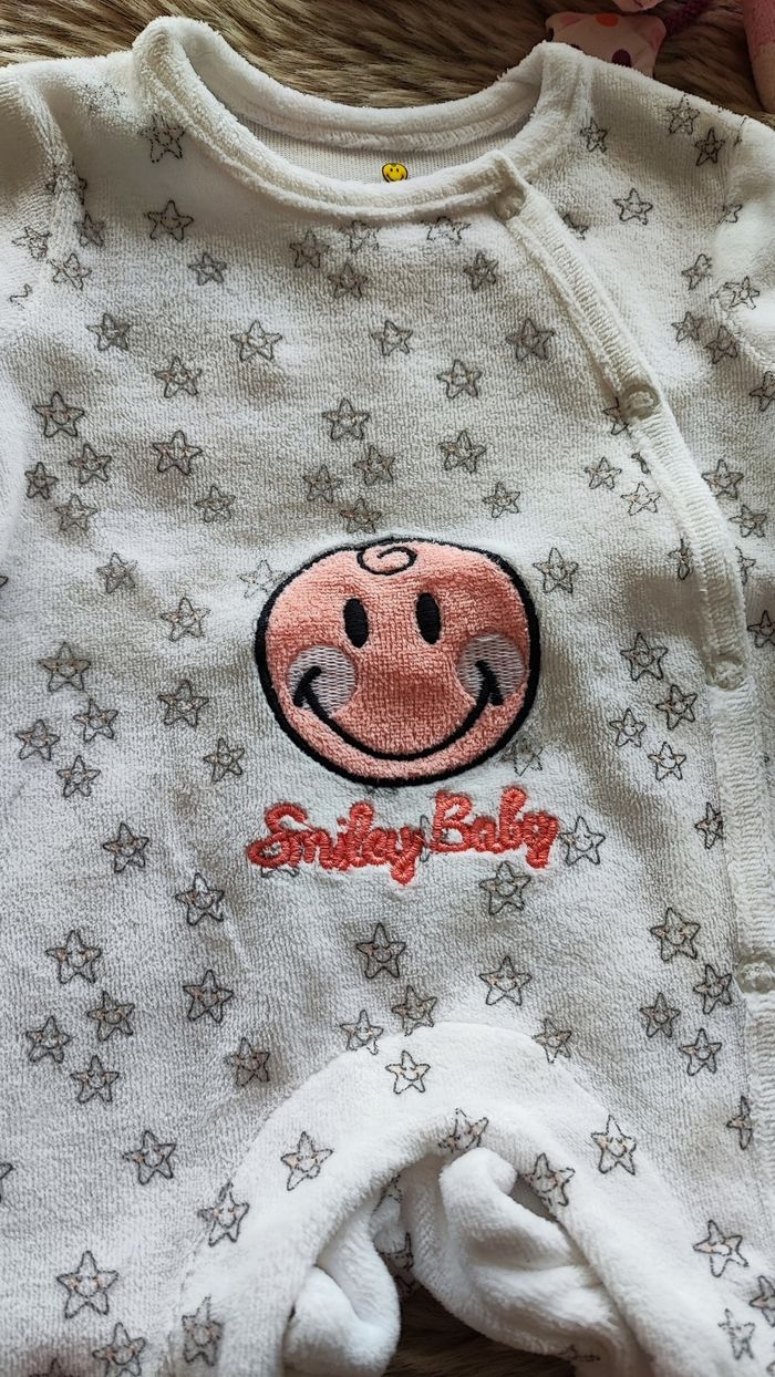 Pyjama chaud en velours blanc smiley avec ouverture sur le devant. De la marque orchestra En taille 1 mois En très bon état maison non fumeur #laetitia33700filleunmois