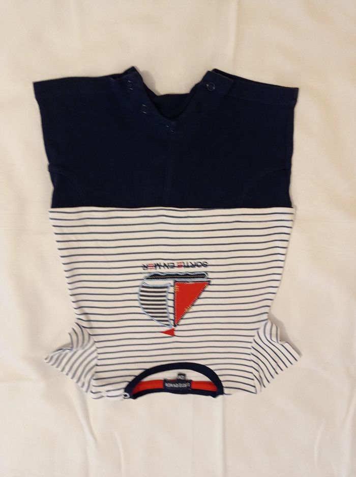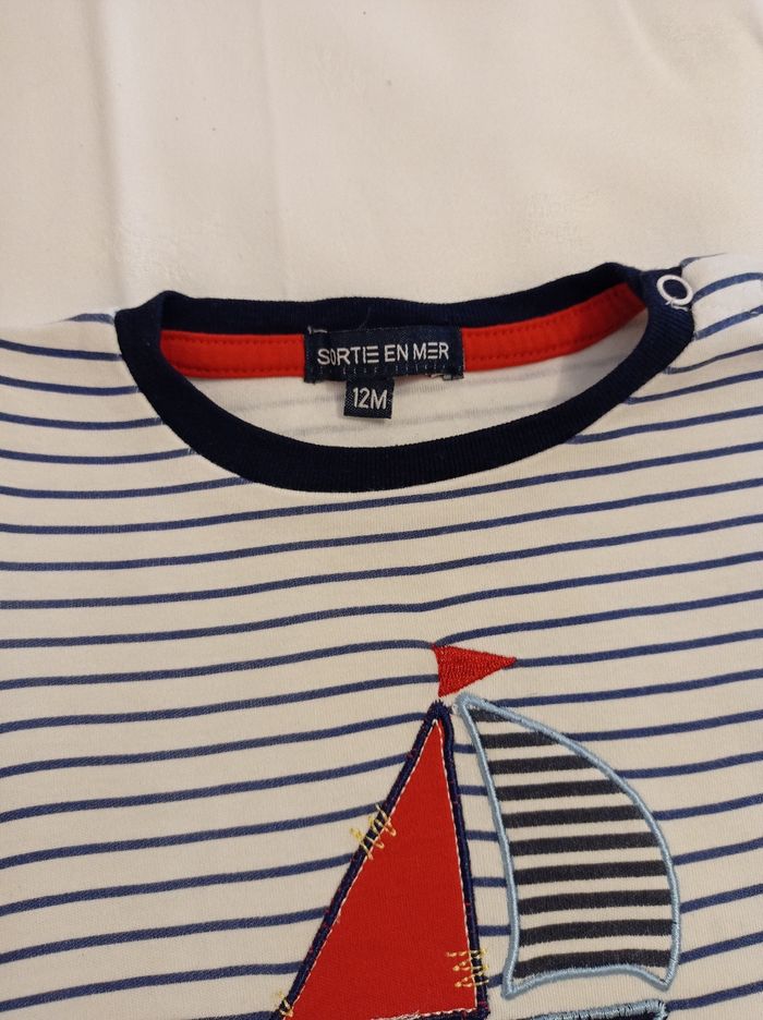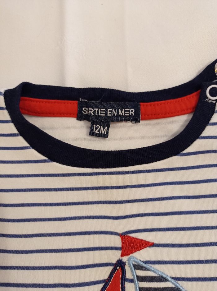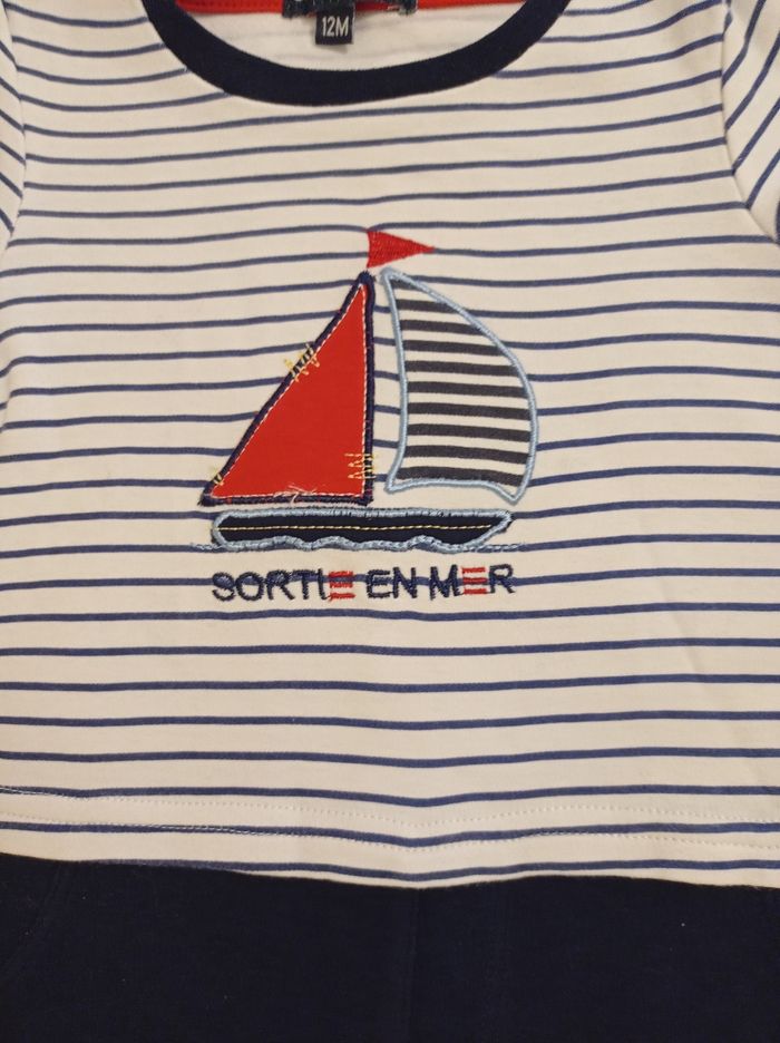 Ensemble pour garçon ensemble complet voir photos marque sortie en mer âge 12 mois ensemble petit marin motif avec bateau devant de pression sur l'épaule super petit ensemble porter deux fois