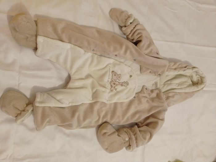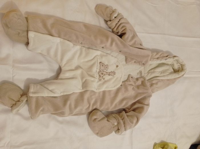 Marque bébé 9 taille 3 mois 60 cm ensemble super chaud pour bébé combinaison chaude avec protège main protège pied et on peut les défaire elle est super belle super chaude en velours grande marque bébé 9