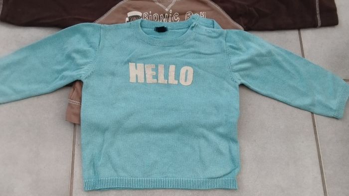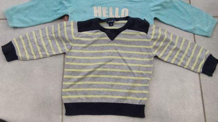 Vend ce lot de 3 pulls. 2 en très bonne état le 3, ème bleu un peu usé et une petite tâche qui peut partir au lavage