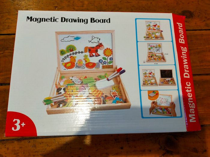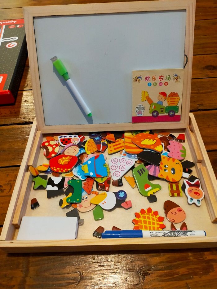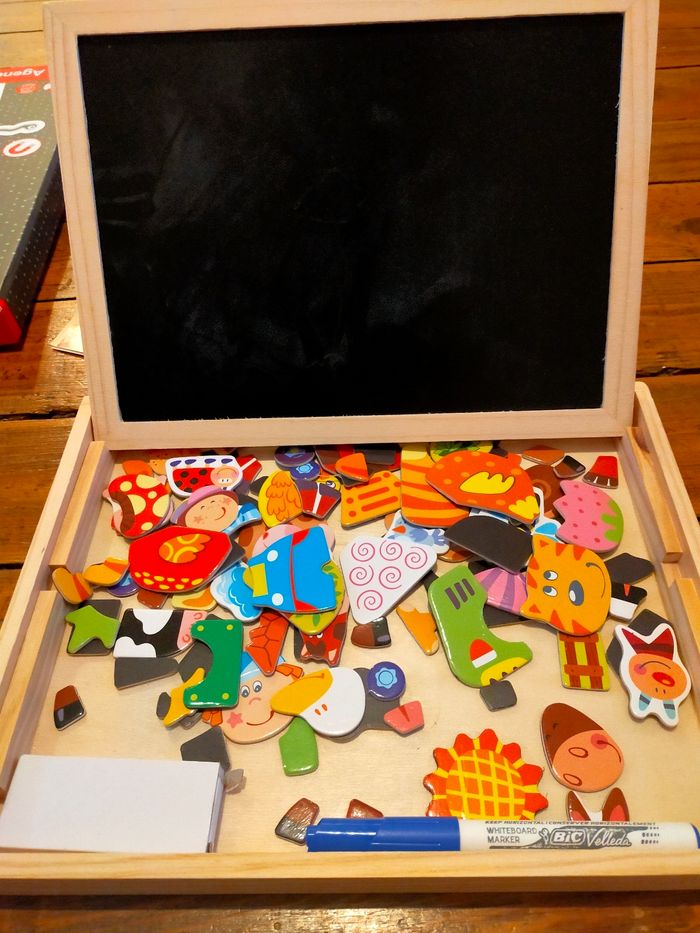 Tableau blanc et aimanté en bois , bon état général