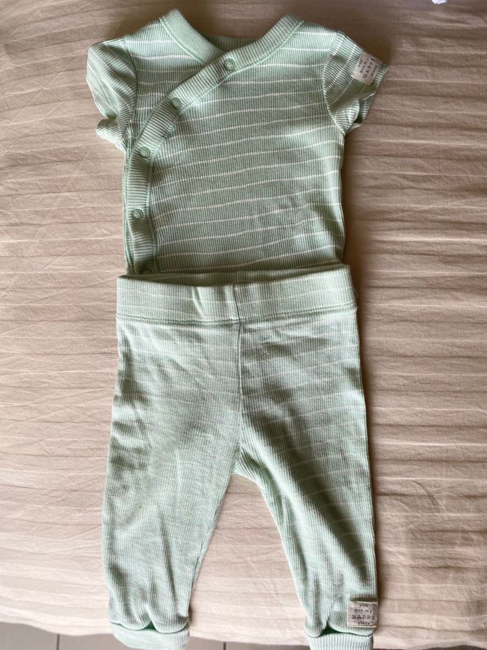 🔸Ensemble mixte avec pantalon et body croisé manches courtes. 🔸Neuf. 🔸3/6 mois.