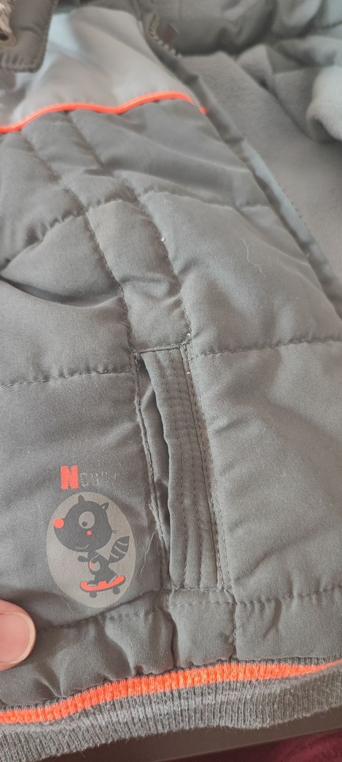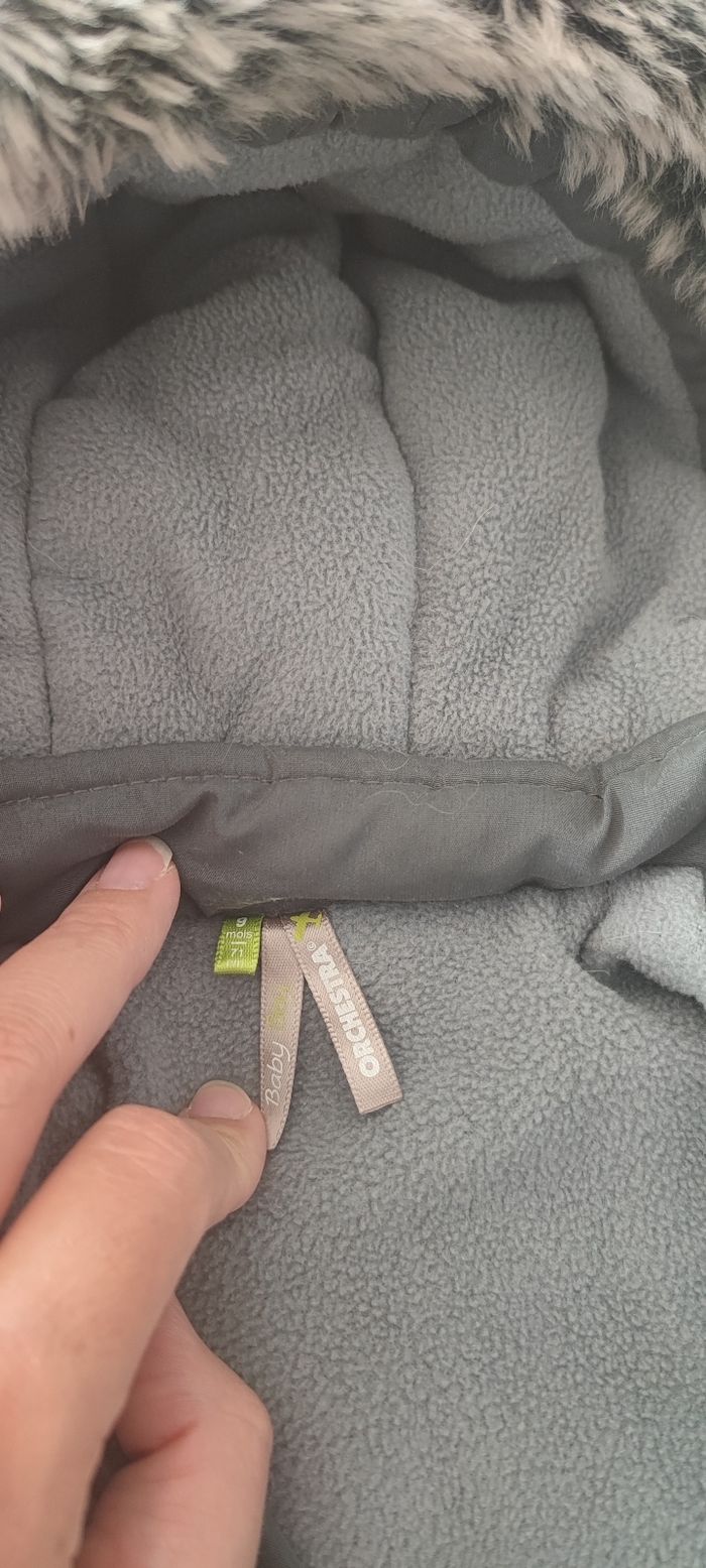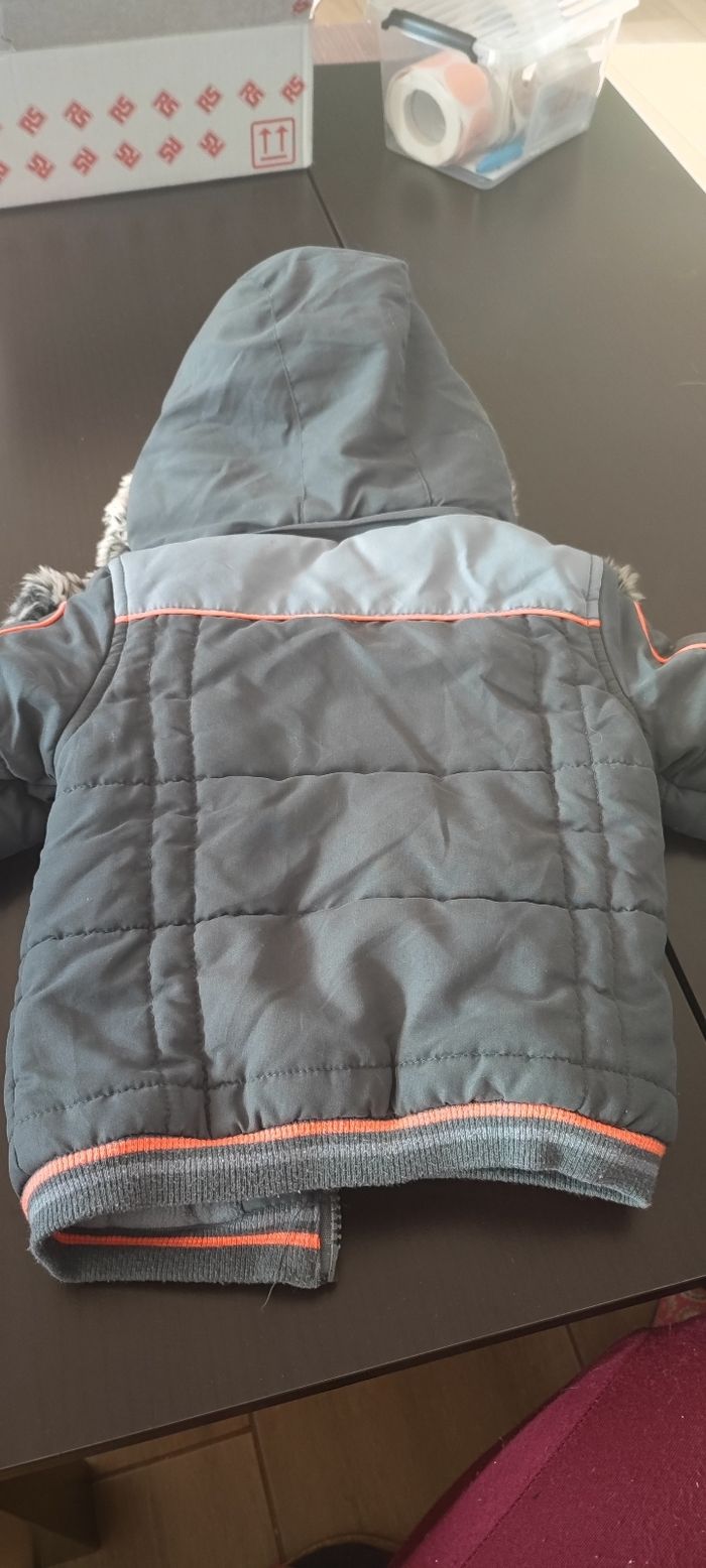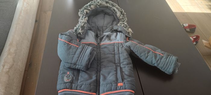 Joli manteau chaud intérieur polaire La capuche peut s'enlever à l'aide d'une fermeture éclair Marque orchestra Taille 9 mois Très bon état, peu porté Il y a seulement la petite impression sur le côté qui s'efface un peu