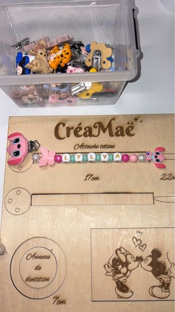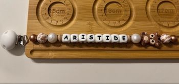 Attache tétine personnalisée au prénom de votre choix Prénom à me communiquer Modèle biche vieux rose beige N'hésitez pas à me contacter pour d'autres modèles