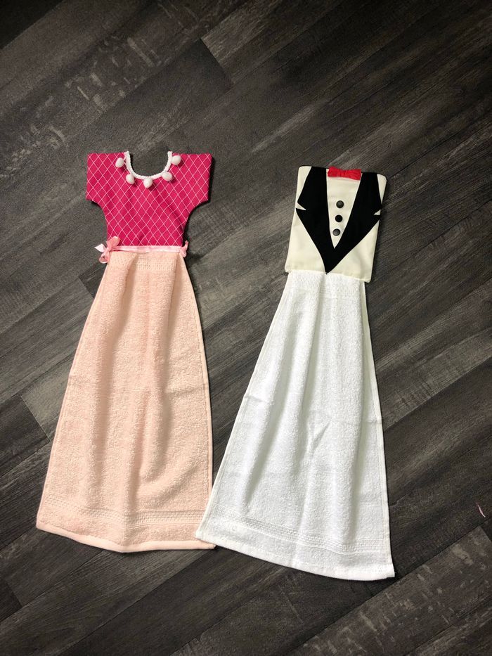 Lot Essuie mains Mr & Mme Je peux broder un prénom ou une phrase sur le Côté éponge