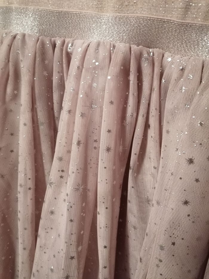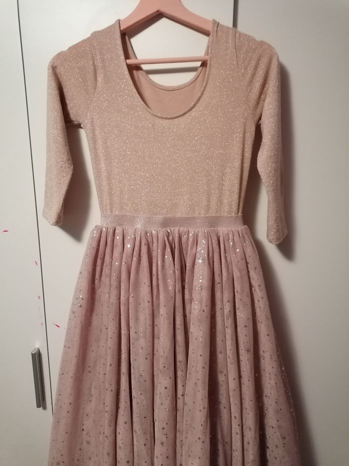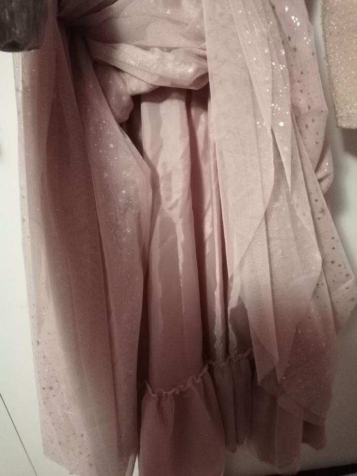 fête. 2 jupons en tulle et un jupon en tissu. Le haut est pailleté. Le dos est un léger dos nu. Portée 2 fois. Achetée 40€. N'hésitez pas à aller voir mon dressing pour avoir la réduction des lots.