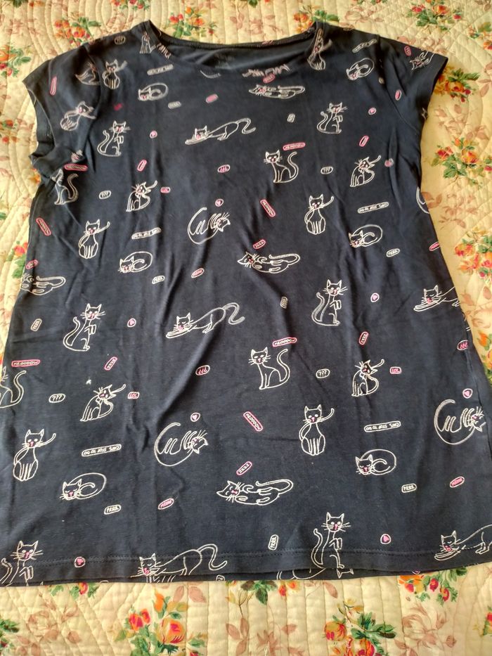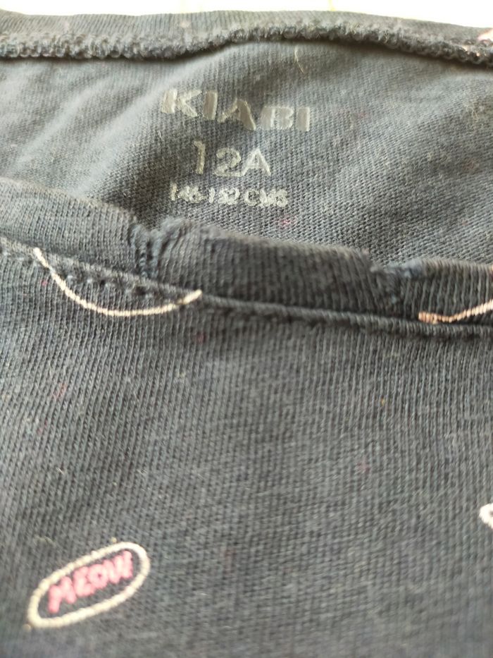 Tee-shirt manches courtes fille 12 ans couleur bleu, état correct. Usure au niveau du col , marque KIABI.