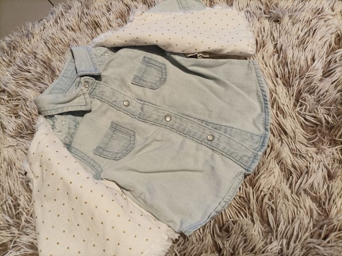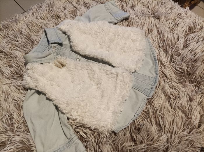 Magnifique chemise en jean avec gilet en fourrure sans manches