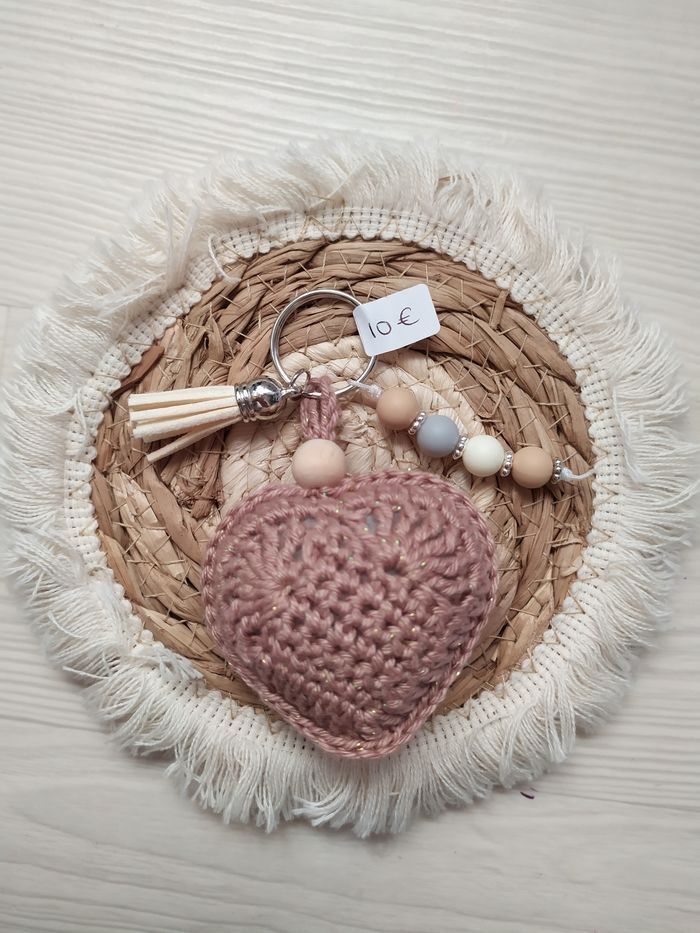 Porte clé cœur au crochet Différents coloris Possibilité de mettre 1 prenom