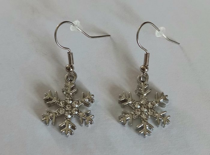 Boucles d'oreilles flocon de neige argenté - photo numéro 3