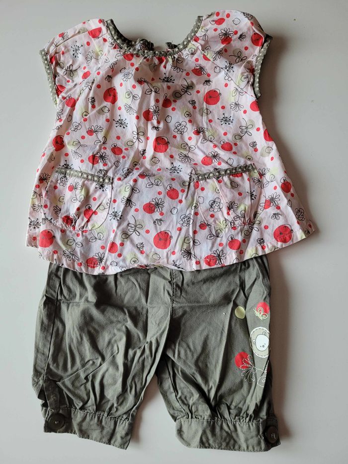 Ensemble t shirt et pantacourt kaki Motifs oiseaux papillons, têtes purs et fleurs