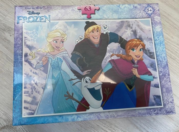 puzzle reine des neiges 63 pièces neuf jamais déballer encore sous film plastique.
