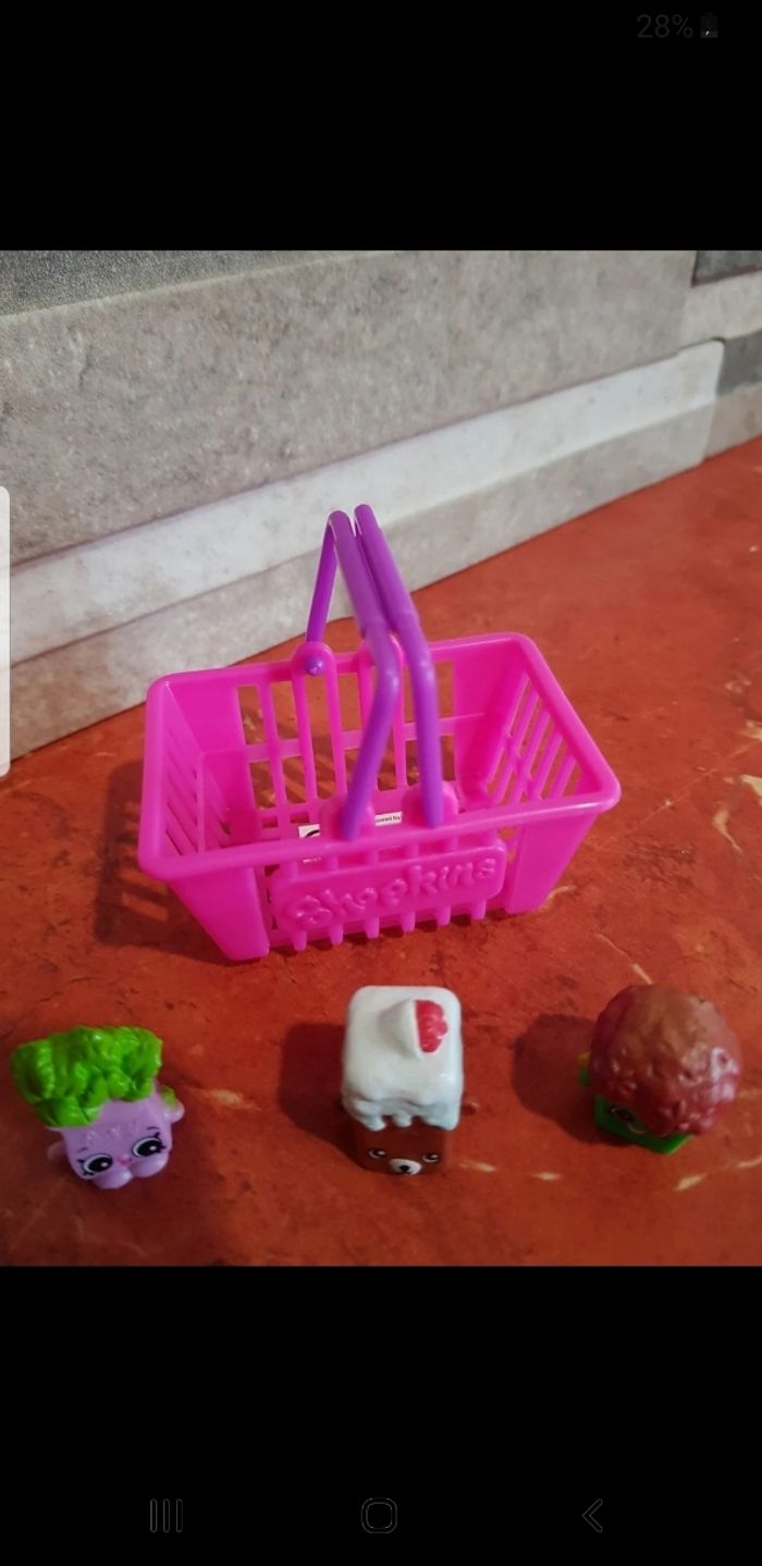Ensemble comprenant un panier et 3 Shopkins