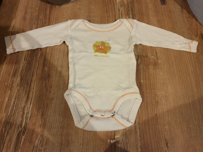 Lot de 4 bodies jour de la semaine : mardi/ mercredi / vendredi / samedi. Thème de la mer.