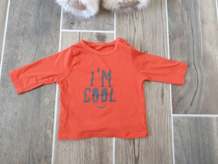 Tee-shirt a manches longues taille 3 mois, l'étiquette a été coupée.