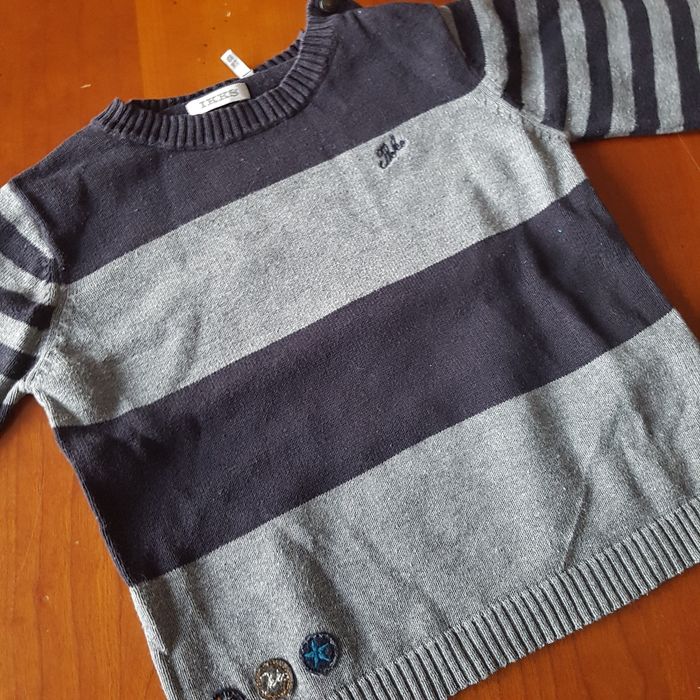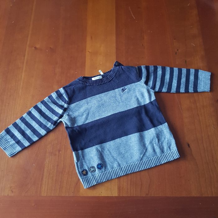 Pull IKKS rayé bleu marine et gris Boutons vers le col