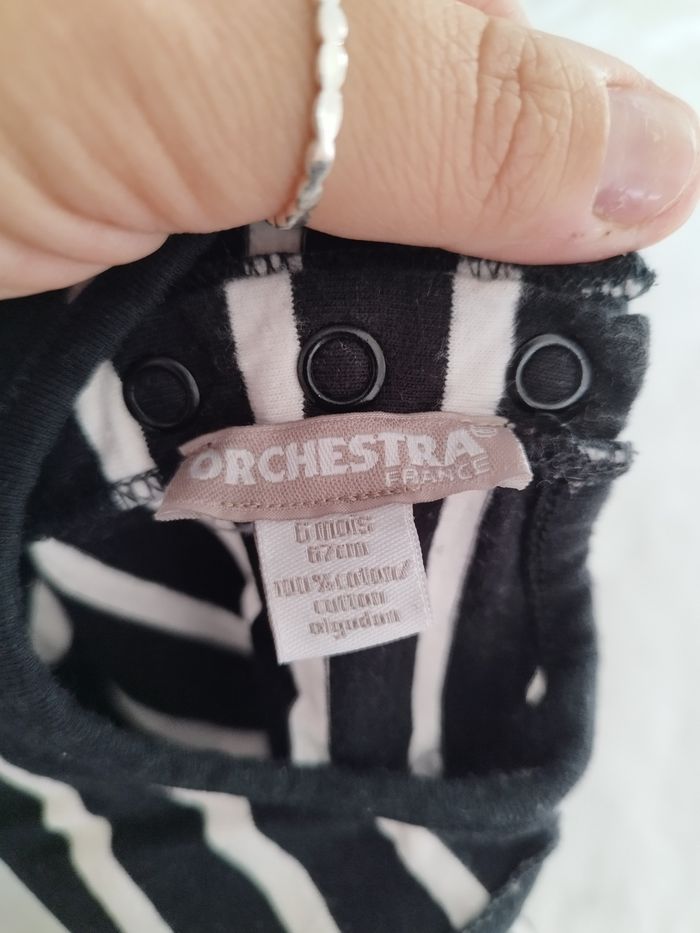 Tee-shirt manche longue de Orchestra Couleur noir et blanc avec des strass sur les épaulettes Taille 6 mois En très bon état