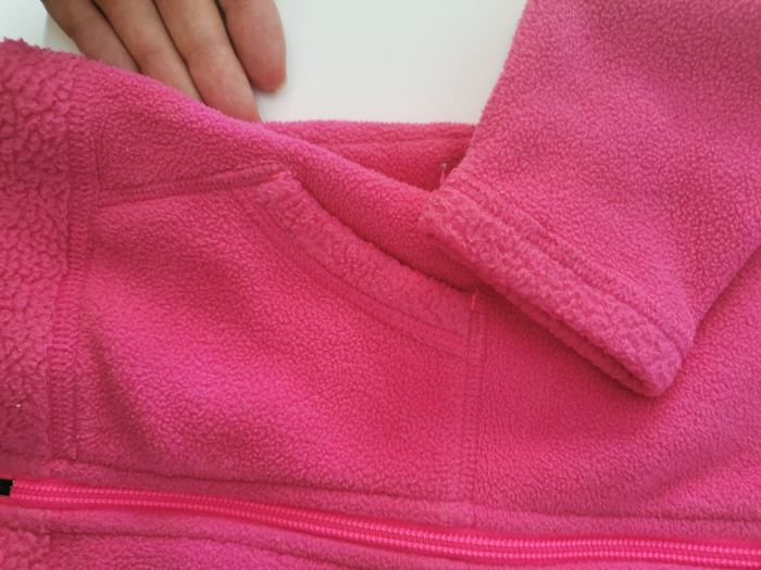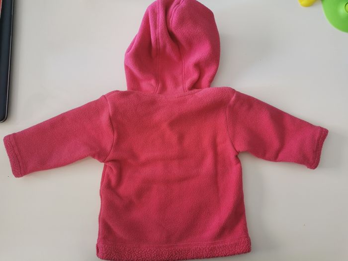 Polaire à capuche rose 6/9mois de la marque Domyos. Elle est en très bon état.