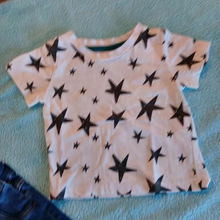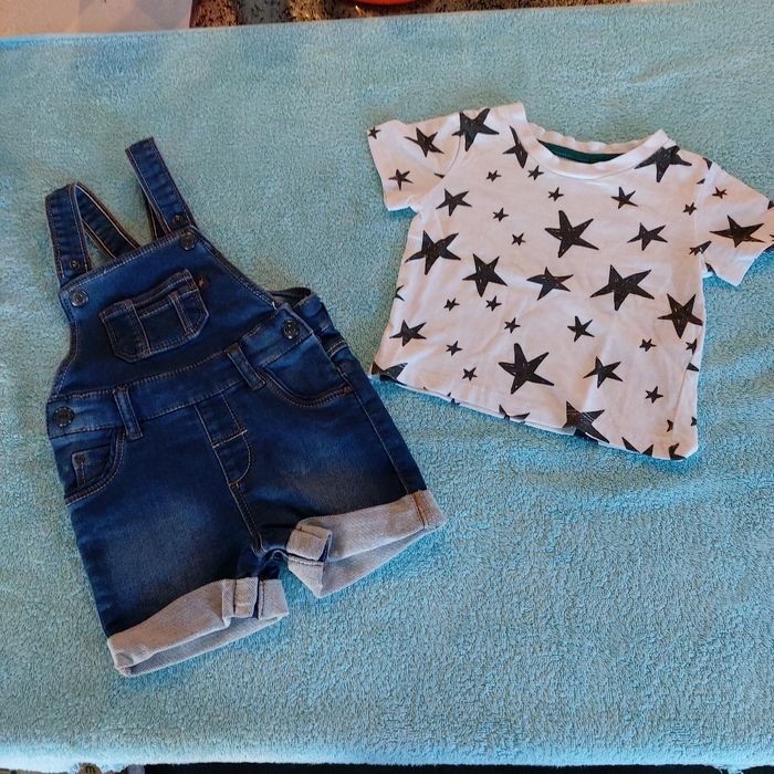 Ensemble Salopette Jean et T-shirt étoile Primark ouverture pression bretelles et entrejambe