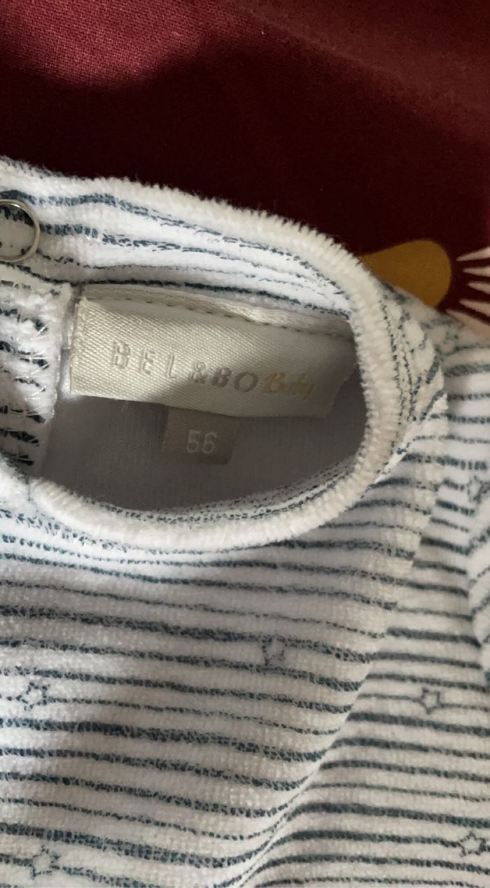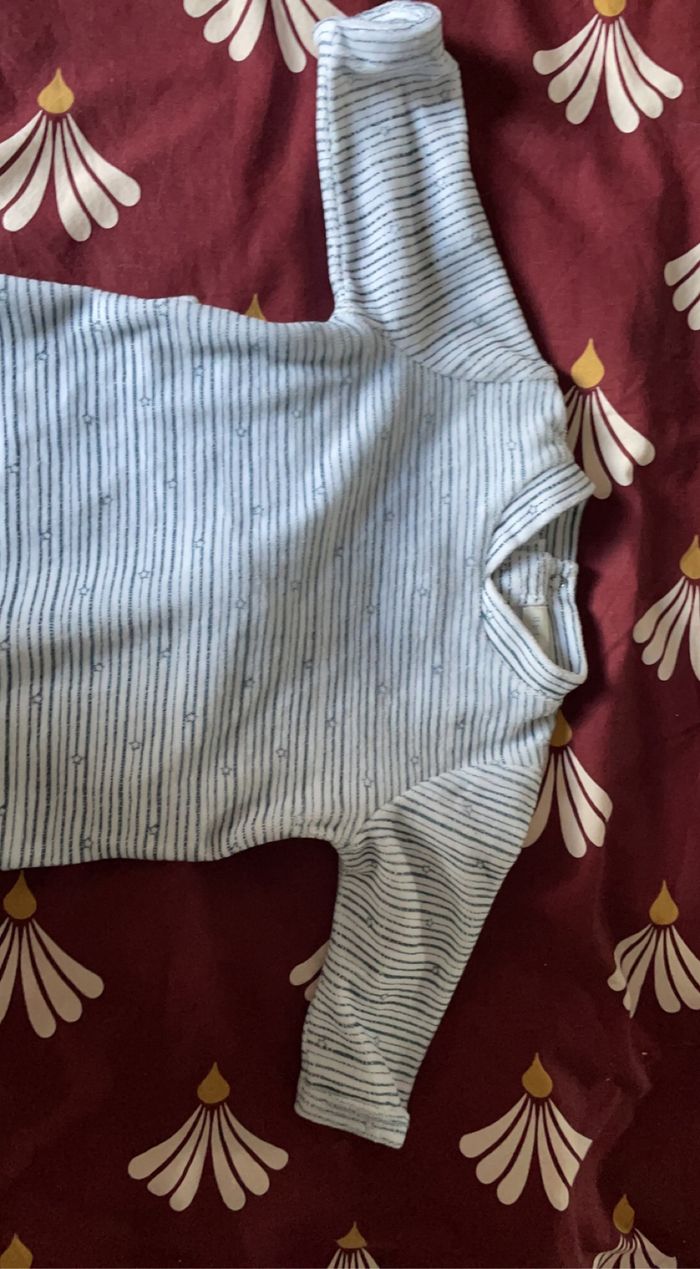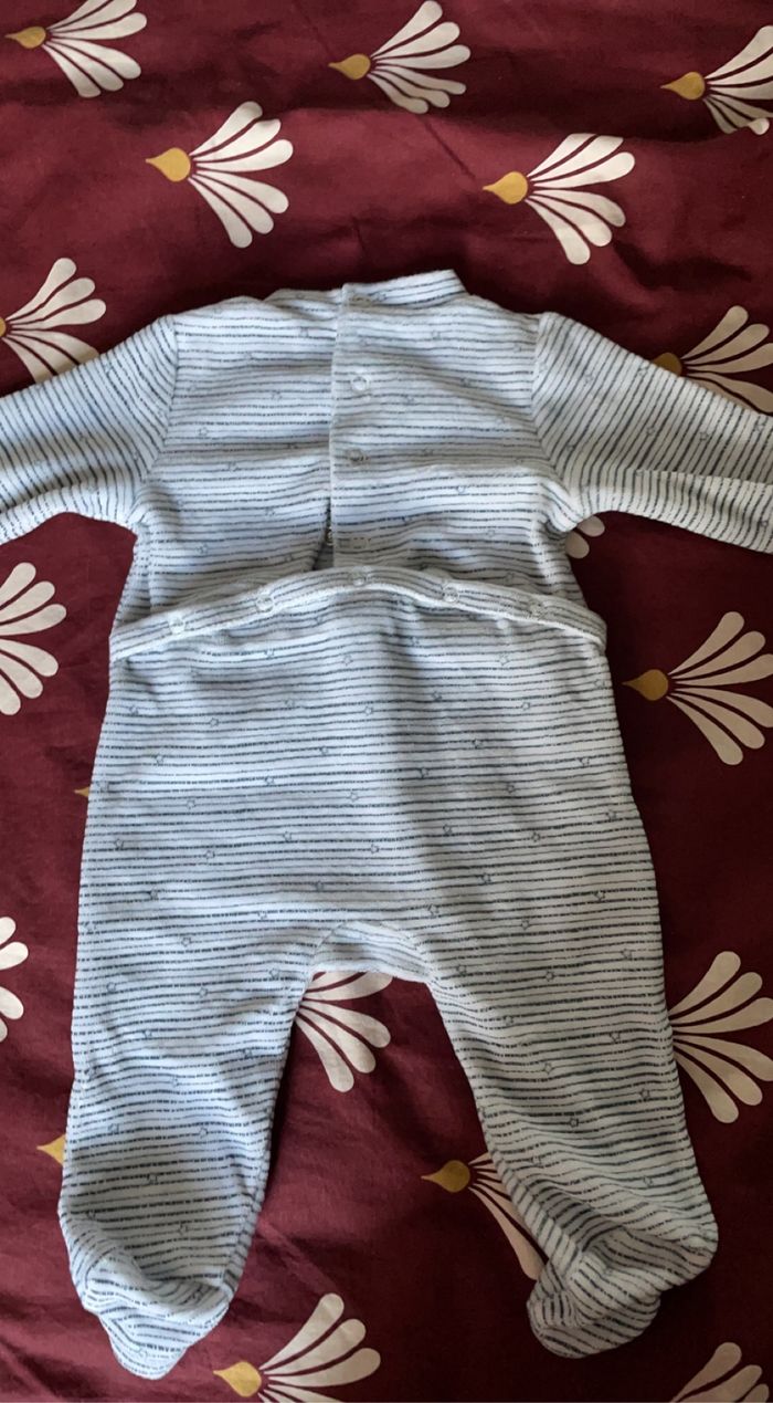 Pyjama rayé Ouverture pressions derrière Blanc et bleu Taille un mois Très bon état Très peu porté