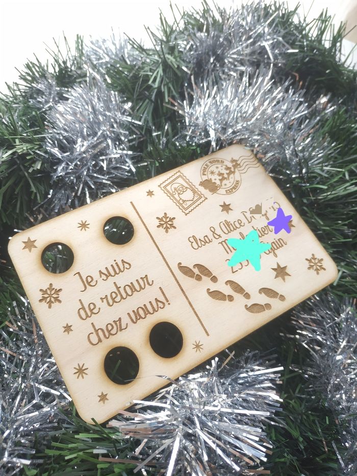 Carte postale pour expédition de votre petit lutin farceur... Pour son retour ou pour sa première arrivée dans votre famille ! Personnalisable avec un petit texte ( ex: Je suis de retour!!) et l'adresse de la famille ! Description: - finition peuplier  - 100 x 150 mm par 4mm d'épaisseur - petit texte et adresse de votre choix  - Lutin non inclus Retrouver toute notre collection de Noël sur notre site www.gravebeau.fr 10% de réduction sur notre site sur votre première commande avec le code gravebeau10