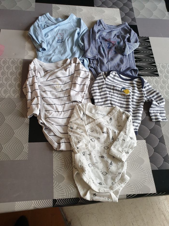 Lot de 5 bodies de taille 1 mois plusieurs marques très bon état