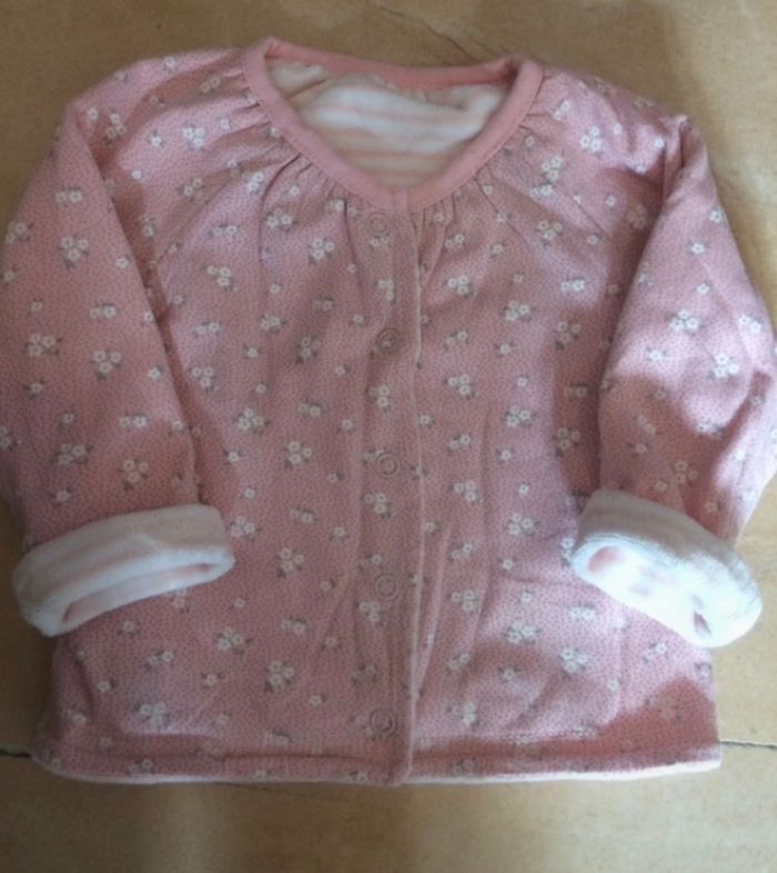 Veste réversible avec boutons, couleur rose et blanc, très joli, taille 1-3 mois, très doux et très chaud. Marque Unit, El Corte Inglés. Très peu porté, pas d’étiquette parce qu’il est réversible.