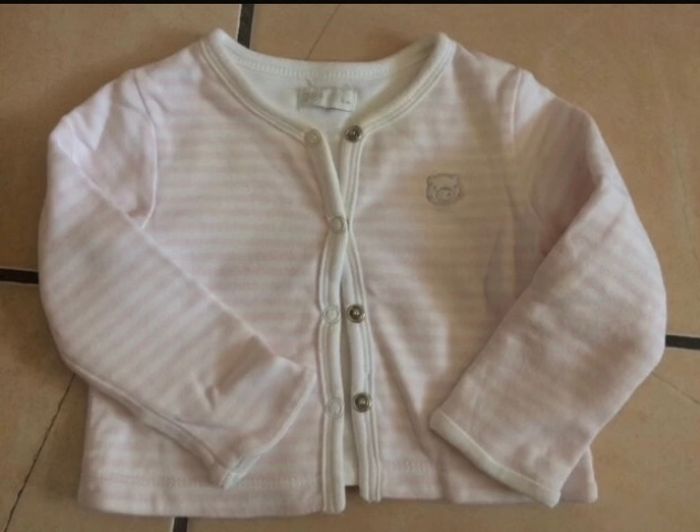 Veste à rayures, couleur blanc et rose, taille 3-6 mois, marque Dombi.