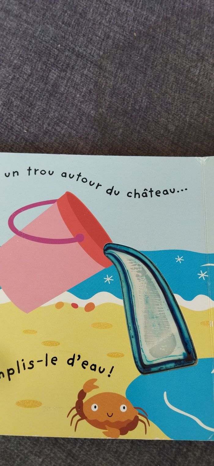 Livre tactile château de sable Avec différentes matières à toucher Il est abîmé mais reste très joli