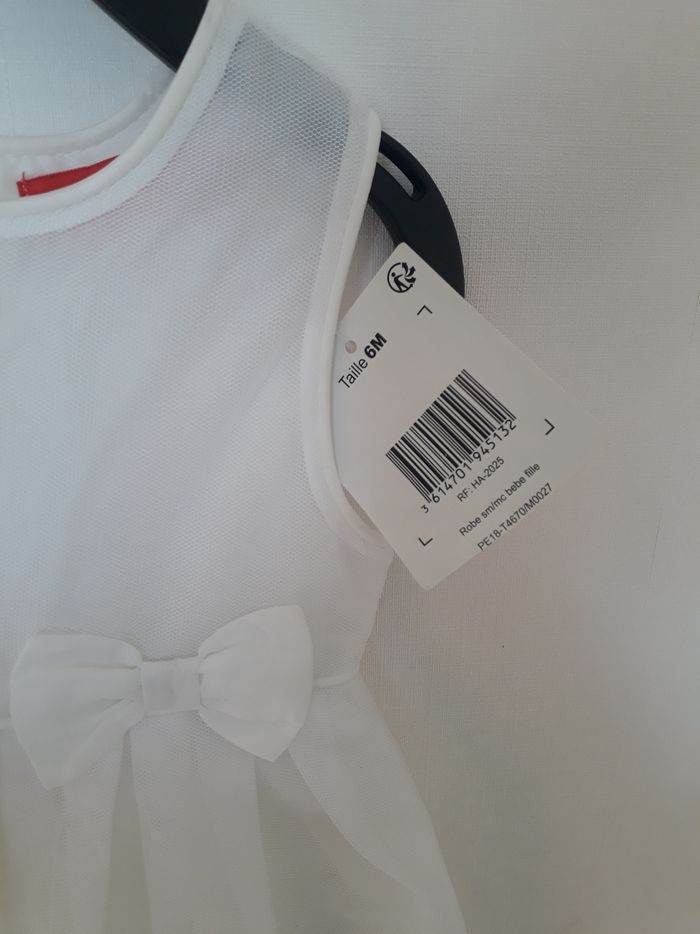 Robe blanche avec nœud 6 mois Tissaia NEUF 10 euros #picolo354vêtementsbébésfilles