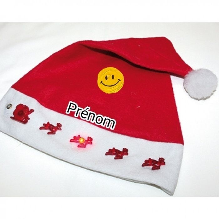 Bonnet de noël rouge et blanc lumineux Ajout du prénom à l'emplacement de la photo Taille unique Pour des modèles déjà fait vous pouvez me demander
